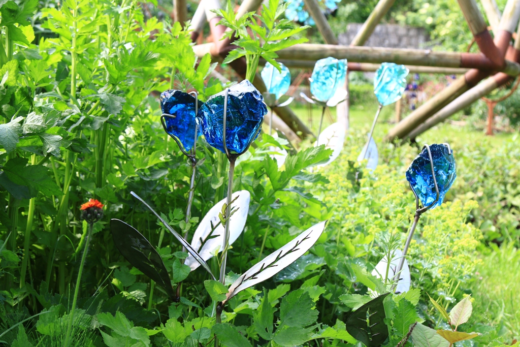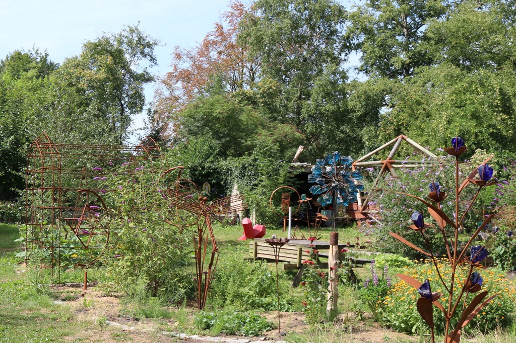 Naast kunstwerken zoals in de rechter kolom beschreven, zijn er ook libellen, vogels en vlinders, soms aan een manshoge mobile. Abstracte objecten met glasbrokken, die het zonlicht vangen. Praktische constructies als rozenbogen, tunnels, priëlen en andere ondersteunende constructies voor planten. Verder vuurschalen, houtkorven en tuintafels.