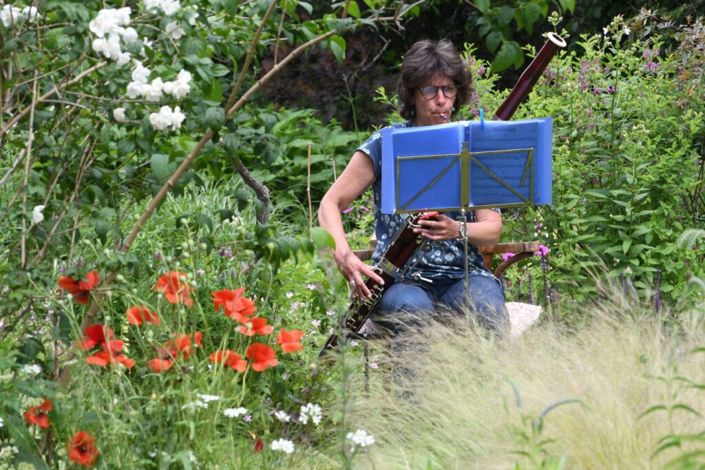 In Amsterdam speelt Wendela Tenner in een blazersensemble, maar tijdens WWR speelt ze solo op haar fagot in de bloemrijke entourage van Moddermanspad.