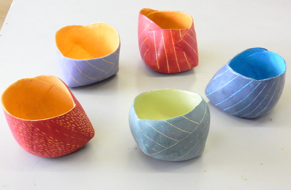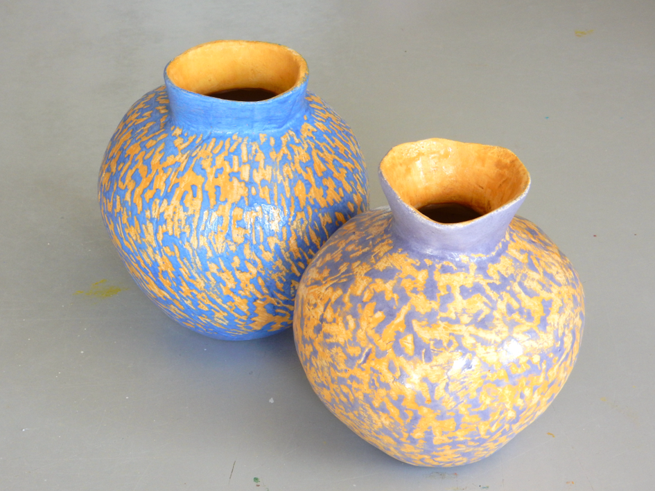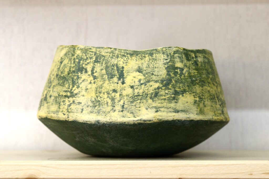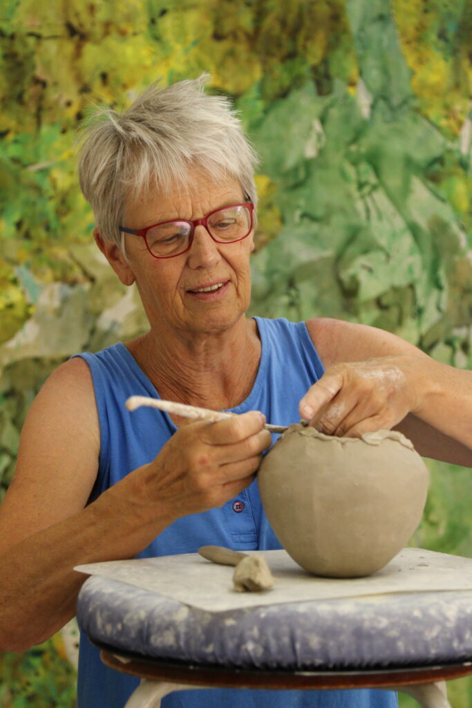 “Na jaren lang schilderen is er, door ook te gaan werken met klei, een dimensie bij gekomen. Ik hou er van om vormen handmatig te laten groeien en daarna te verfraaien met kleur. Qua vorm varieer ik op bepaalde thema’s, zoals schalen, kommen en meer vrije vormen.